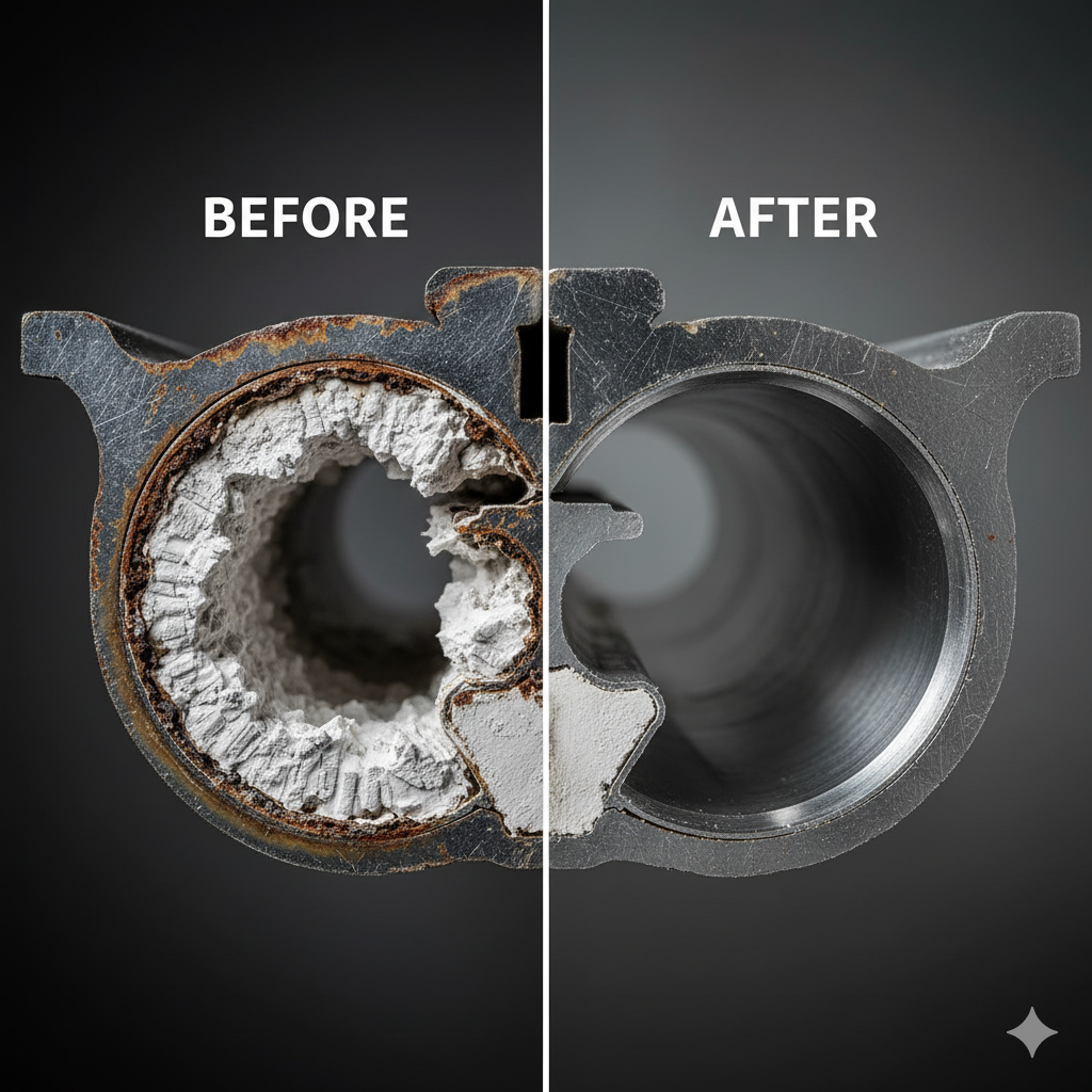 Ca(HCO₃)₂ + ความร้อน → CaCO₃ (ตะกรัน) + H₂O + CO₂
