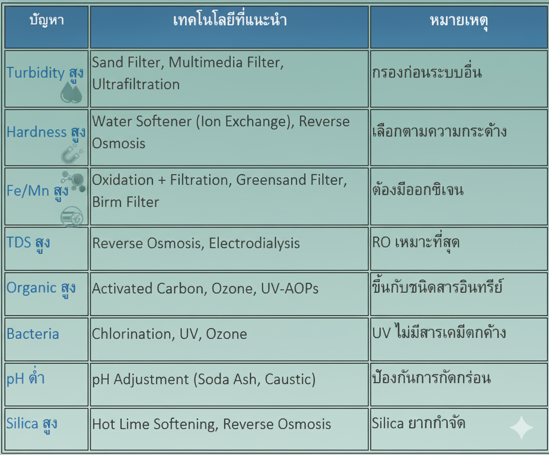 6. ลงทุนในเทคโนโลยีที่เหมาะสม - เลือกระบบบำบัดและอุปกรณ์ตรวจวัดที่สอดคล้องกับคุณภาพน้ำดิบ