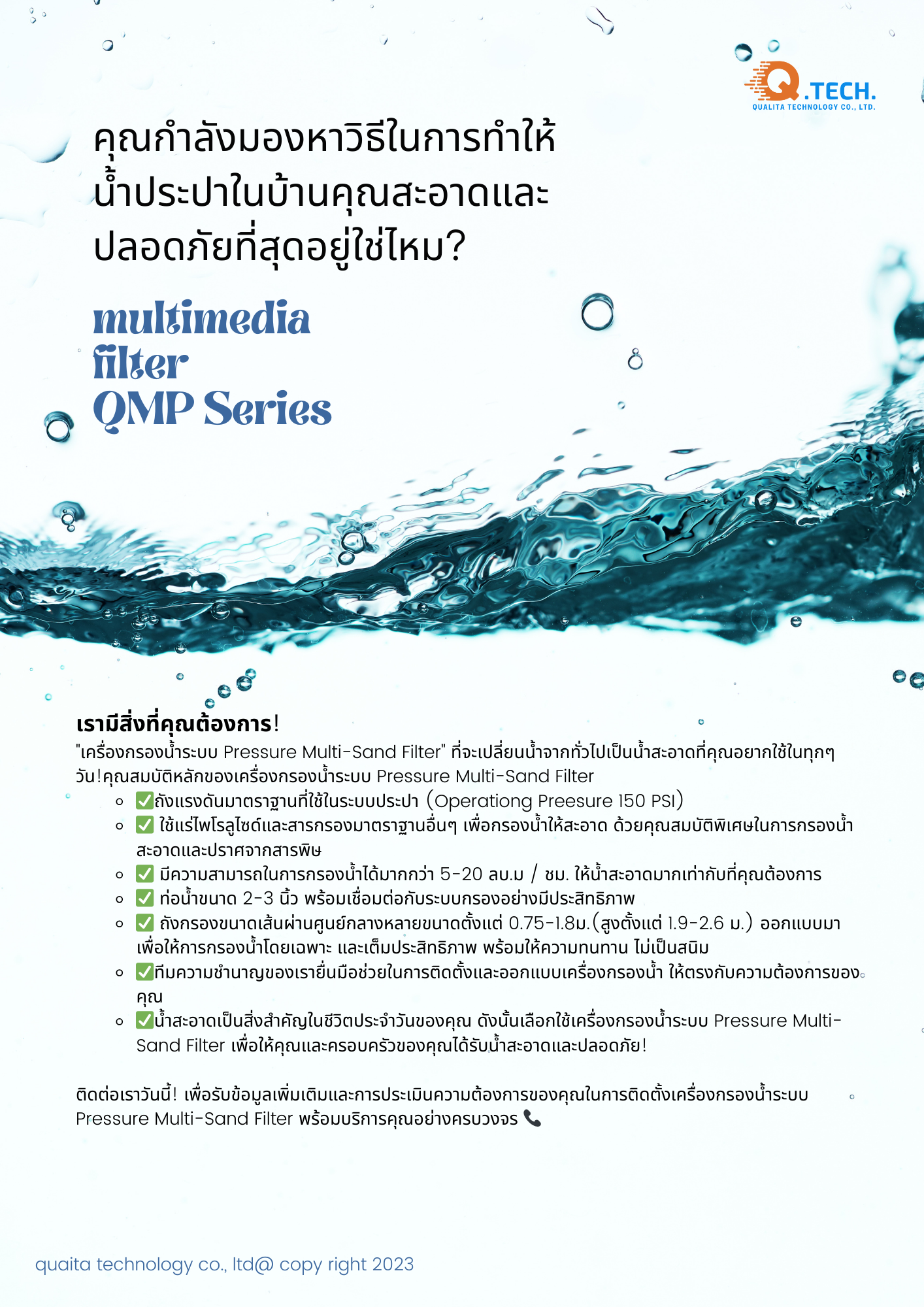 ✅น้ำสะอาดเป็นสิ่งสำคัญในชีวิตประจำวันของคุณ ดังนั้นเลือกใช้เครื่องกรองน้ำระบบ Pressure Multi-Sand Filter เพื่อให้คุณและครอบครัวของคุณได้รับน้ำสะอาดและปลอดภัย!