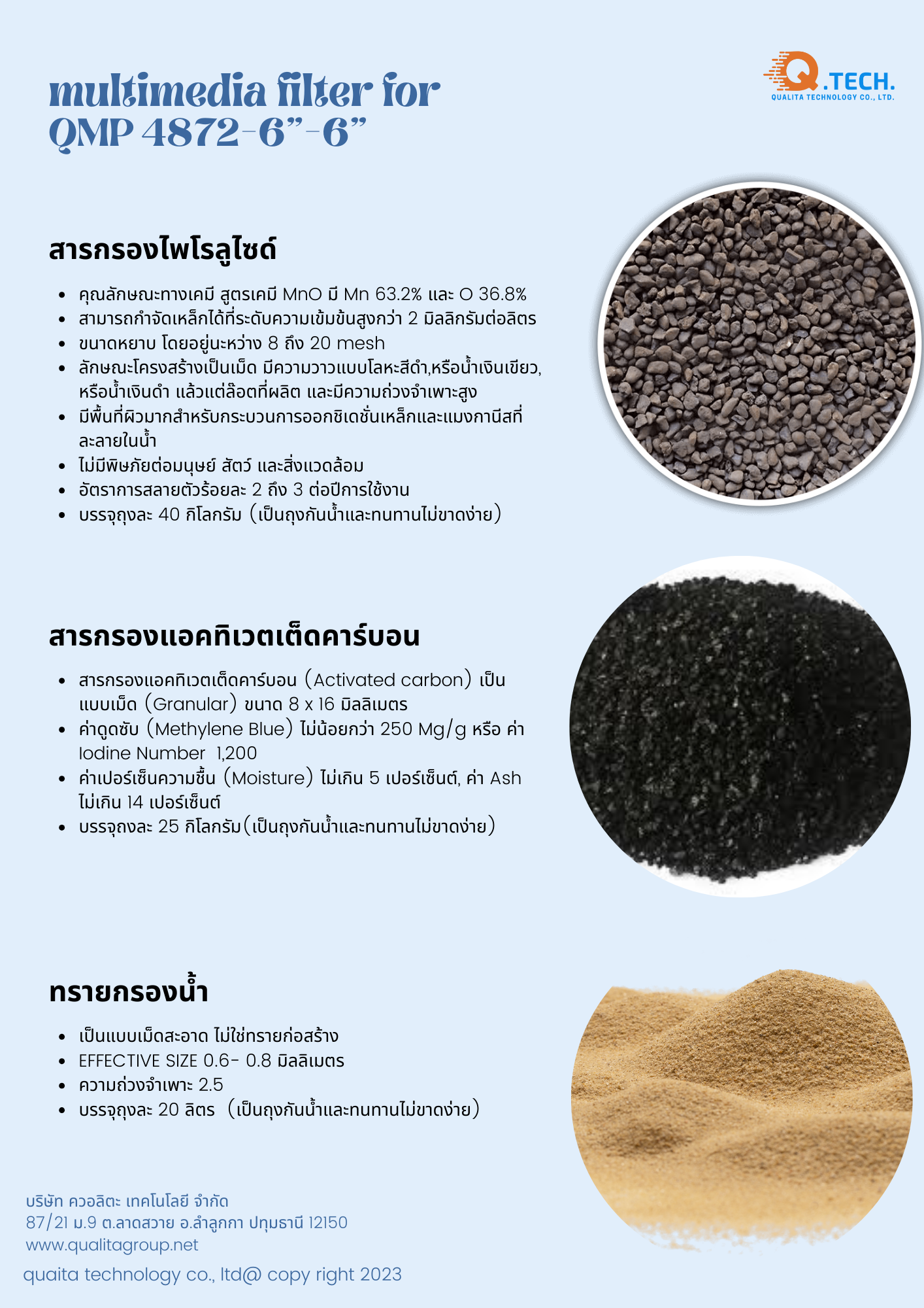 /สารกรองแอคทิเวตเต็ดคาร์บอน (Activated carbon) เป็นแบบเม็ด (Granular) ขนาด 8 x 16 มิลลิเมตร