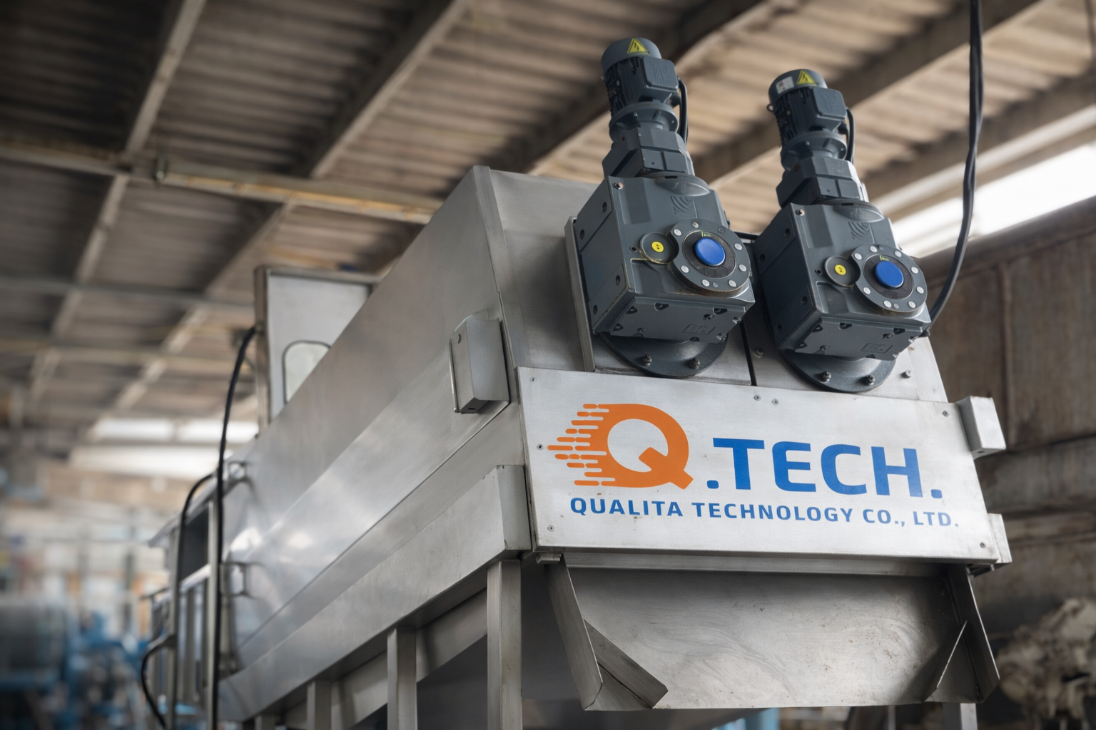 ระบบ Screw Press Dewatering System คือโซลูชันขั้นสูงและประหยัดพลังงานสำหรับการบำบัดตะกอนในระบบบำบัดน้ำเสียชุมชนและอุตสาหกรรม เทคโนโลยีที่เป็นนวัตกรรมนี้ใช้สกรูลำเลียงที่หมุนช้าภายในตะแกรงกรองทรงกระบอกเพื่อทำให้ตะกอนข้นขึ้นและลดความชื้นอย่างค่อยเป็นค่อยไปผ่านการอัดทางกล เมื่อตะกอนที่ผ่านการปรับสภาพเข้าสู่ระบบ รูปทรงเรขาคณิตของสกรูจะลดปริมาตรและระยะห่างของเกลียวลงเรื่อยๆ สร้างแรงดันที่เพิ่มขึ้นซึ่งแยกน้ำออกจากของแข็งได้อย่างมีประสิทธิภาพ น้ำที่กรองออกมาไหลผ่านตะแกรงรูพรุน ในขั้นตอนสุดท้ายจะได้ตะกอนแห้งที่มีปริมาณของแข็งแห้ง 15-25% ซึ่งถูกปล่อยออกมาอย่างต่อเนื่อง ระบบมีกลไกทำความสะอาดอัตโนมัติที่วงแหวนเคลื่อนที่สร้างการเคลื่อนไหวแบบไม่มีแรงเสียดทานป้องกันการอุดตัน พร้อมทั้งระบบฉีดล้างอัตโนมัติรักษาประสิทธิภาพสูงสุดโดยไม่หยุดการทำงาน กรวยปรับแรงดันด้วยระบบลมที่ปลายทางปล่อยออกรับประกันความแห้งของตะกอนที่สม่ำเสมอแม้ลักษณะตะกอนจะเปลี่ยนแปลง เมื่อเทียบกับเครื่องกดกรองแบบสายพานและเครื่องปั่นเหวี่ยงแบบดั้งเดิม ระบบ screw press ให้ข้อได้เปรียบที่สำคัญรวมถึงการใช้พลังงานต่ำกว่า 50-70% การใช้งานอัตโนมัติอย่างเต็มรูปแบบที่ต้องการผู้ดูแลน้อยที่สุด พื้นที่ติดตั้งกะทัดรัดใช้พื้นที่น้อยกว่า การใช้พอลิเมอร์ลดลงผ่านการทำฟลอคคูเลชันที่เหมาะสม และการทำงานเงียบต่ำกว่า 60 เดซิเบลด้วยการออกแบบแบบปิดที่ลดกลิ่นไม่พึงประสงค์ เทคโนโลยีนี้มีประสิทธิภาพสูงโดยเฉพาะในการบำบัดตะกอนกัมมันต์ ตะกอนชีวภาพ ตะกอนกระบวนการอุตสาหกรรม และของเสียจากการแปรรูปอาหาร ทำให้เป็นทางเลือกที่เหมาะสำหรับโรงงานที่ต้องการโซลูชันการจัดการตะกอนที่เชื่อถือได้ คุ้มค่า และยั่งยืนด้านสิ่งแวดล้อม ด้วยกำลังการผลิตตั้งแต่ 20 ถึงกว่า 1,300 กิโลกรัมของแข็งแห้งต่อชั่วโมง